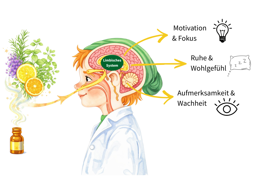 - Duftmoleküle gelangen über die Nase ohne Umwege ins limbische System, das Gefühle, Aufmerksamkeit und Motivation steuert.